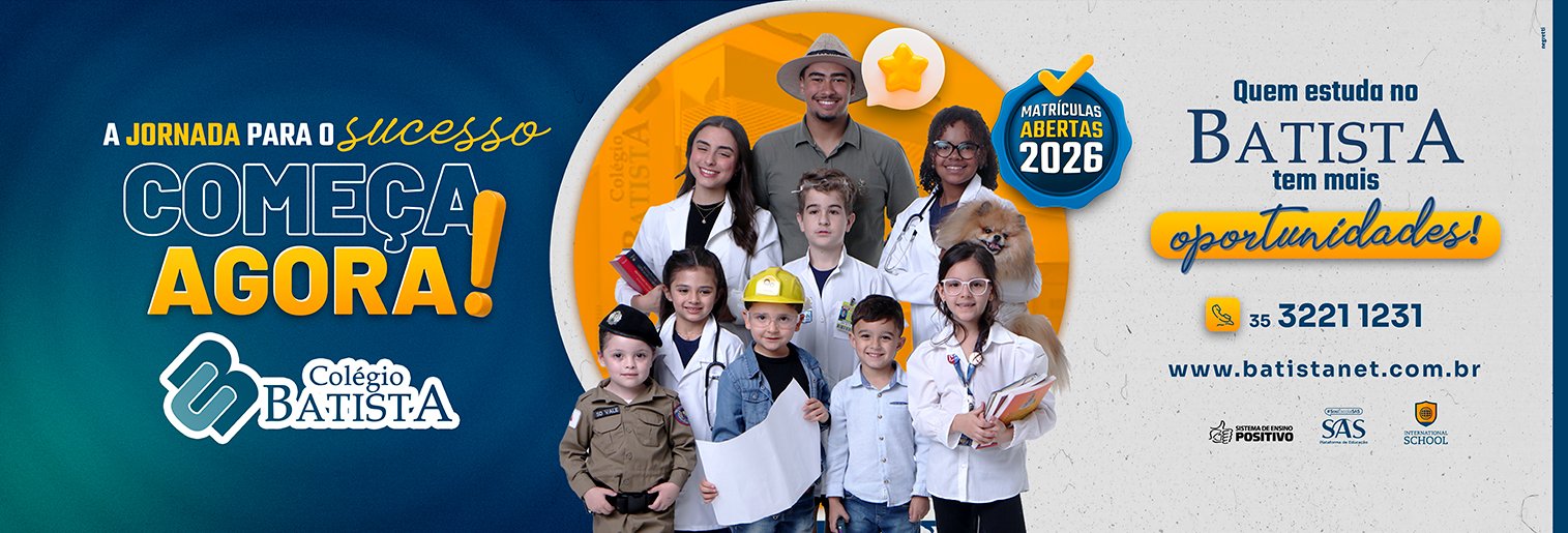 ATENÇÃO! Alunos do Batista terão suas vagas garantidas no período de 22/09 à 03/10. Após essa data, serão abertas matrículas para os novos alunos. A rematrícula será realizada preferencialmente de forma online através do App Sophia by Layers ou pela site https://sophiaby.layers.education/@sophia-9847-21. Para realizar rematrícula de forma presencial é necessário agendar horário.